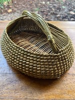 An oval basket woven using the Neolithic technique with scallomed stakes.
